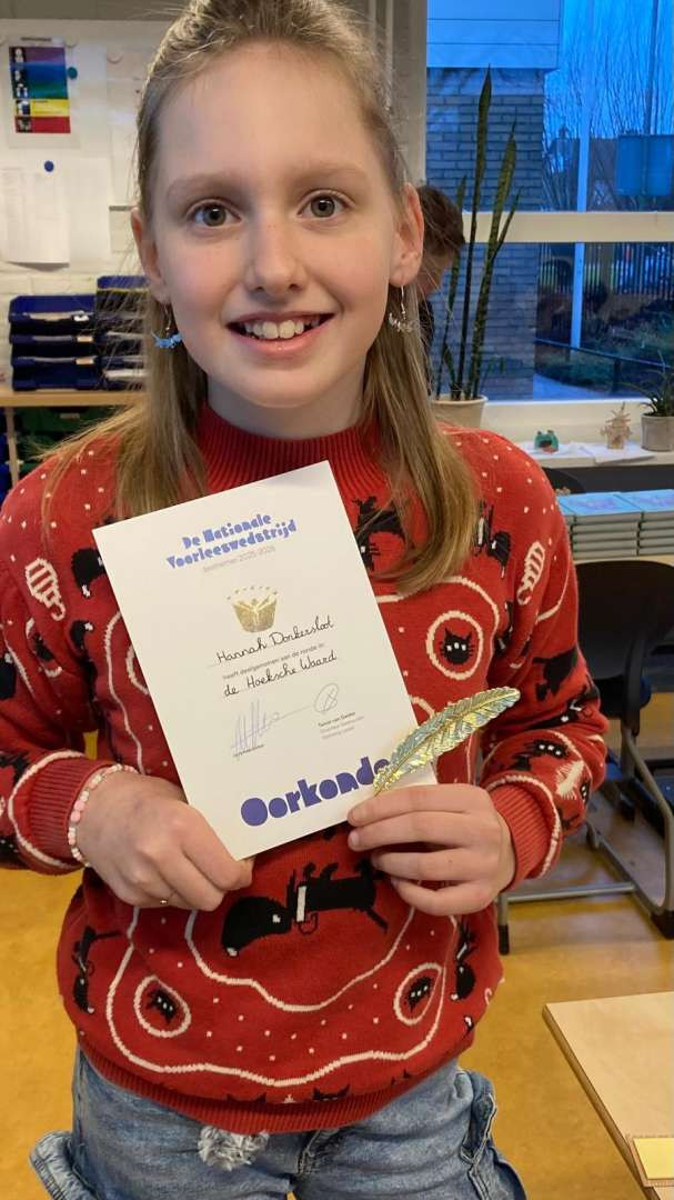 Afgelopen woensdag heeft Hannah de Vliet mogen vertegenwoordigen tijdens de eerste ronde van de Nationale Voorleeswedstrijd in Oudbijerland.
