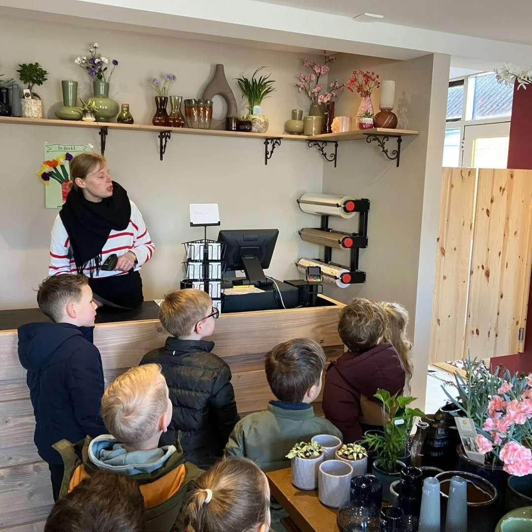 Onze kleuters waren donderdag op bezoek bij de bloemenwinkel in Klaaswaal. Passend bij het thema 'lente in de tuin' mochten we alles bewonderen en natuurlijk ruiken. Wat een inspiratie voor in onze eigen klas.