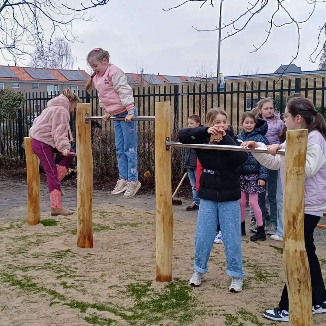 Extra bijzonder is dat de leerlingen hier zelf een bijdrage aan hebben geleverd. Een tijd geleden hebben zij geld ingezameld om dit mogelijk te maken. Er werd meteen geklommen, gehangen en geduikeld. We wensen alle kinderen heel veel speelplezier!