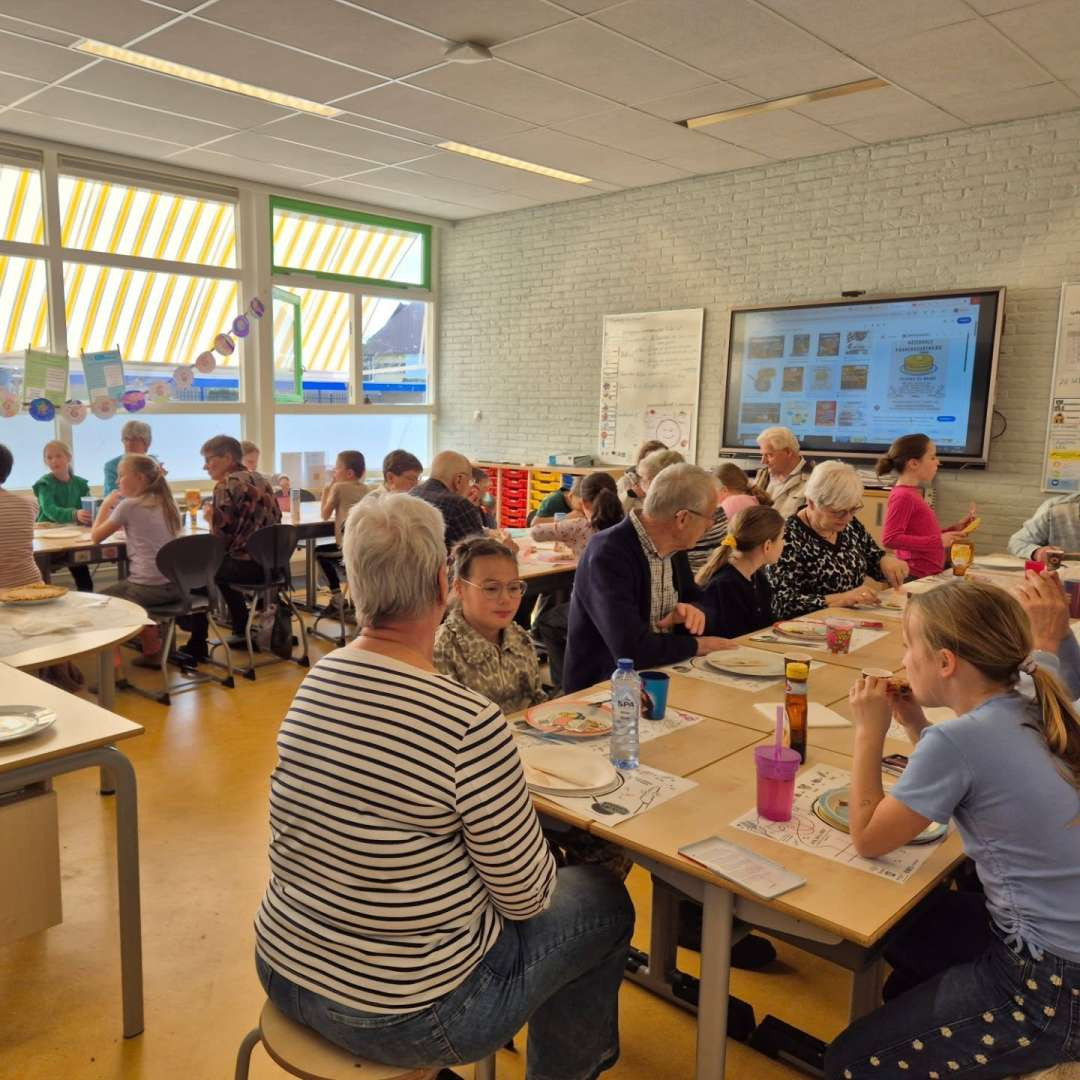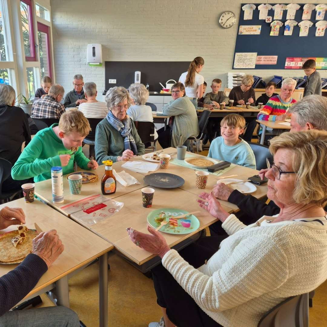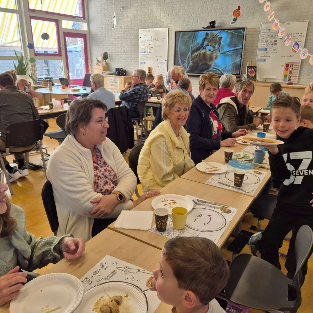 Vandaag stond De Vliet in teken van gezelligheid, verbinding en natuurlijk heel veel pannenkoeken! Wat was het fantastisch om zoveel opa’s en oma’s in de klas te hebben.