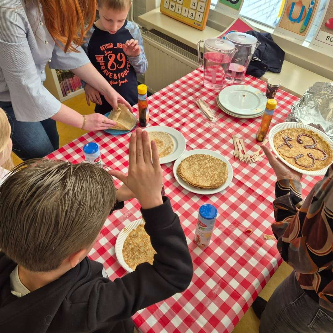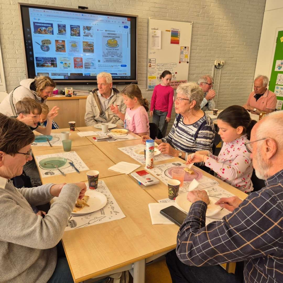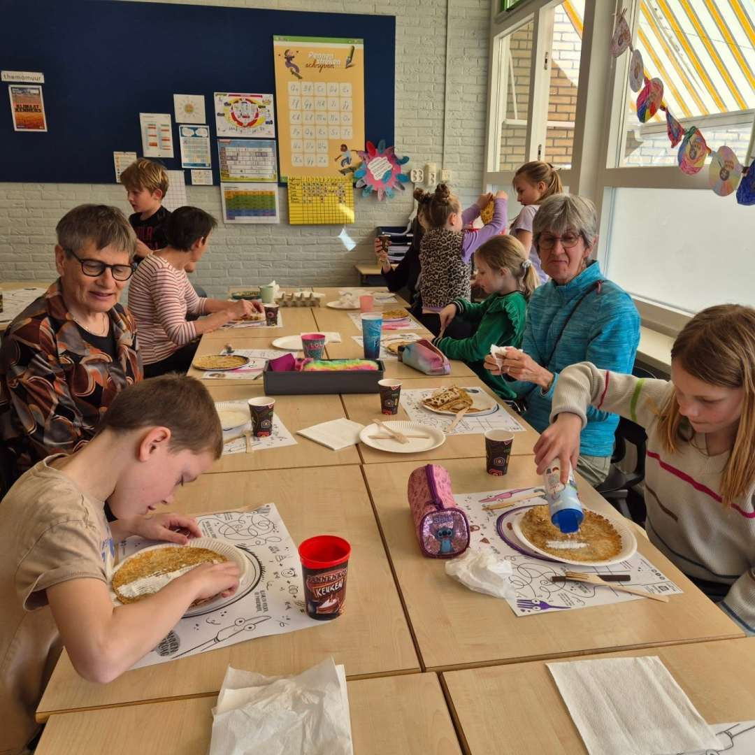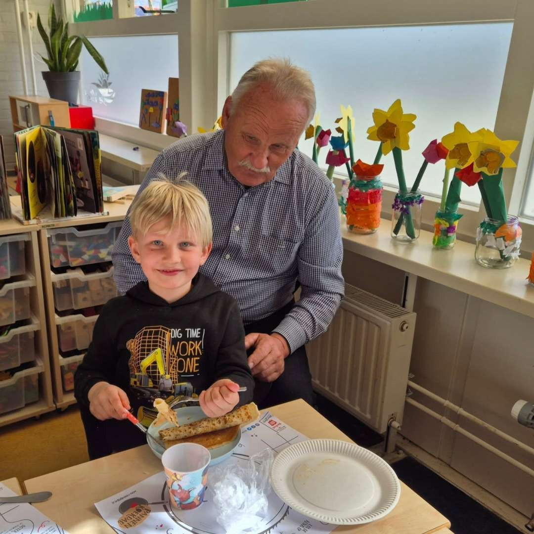 Vandaag stond De Vliet in teken van gezelligheid, verbinding en natuurlijk heel veel pannenkoeken! Wat was het fantastisch om zoveel opa’s en oma’s in de klas te hebben.
